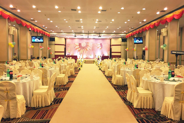 凌霄厅:场地面积约400㎡,最高可容纳25桌标准宴席。