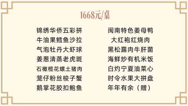 岁末团圆宴,闽味正浓时。厦门华侨大厦诚邀您与同仁挚友,共赴一场温暖丰盛的年终之约一一以地道闽粤佳肴,致敬一年的耕耘;用暖心专业服务,珍藏团聚的笑语。