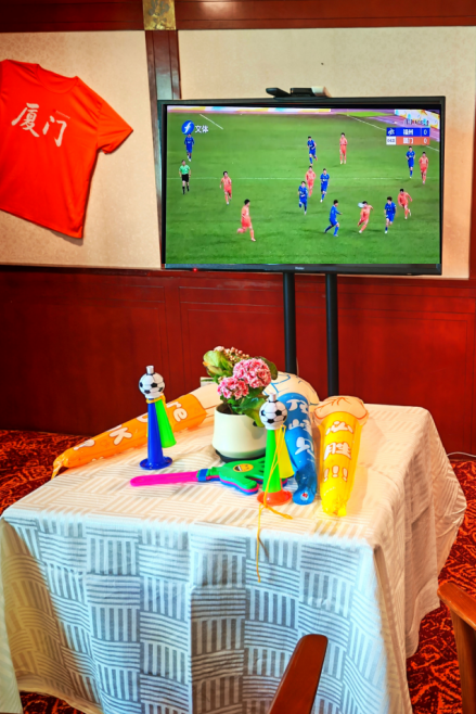 酒店打破围墙,打造闽超观赛空间:酒店12楼变身 “闽超第二观赛场区”,赛事装饰+助威道具,热血延续不设限。