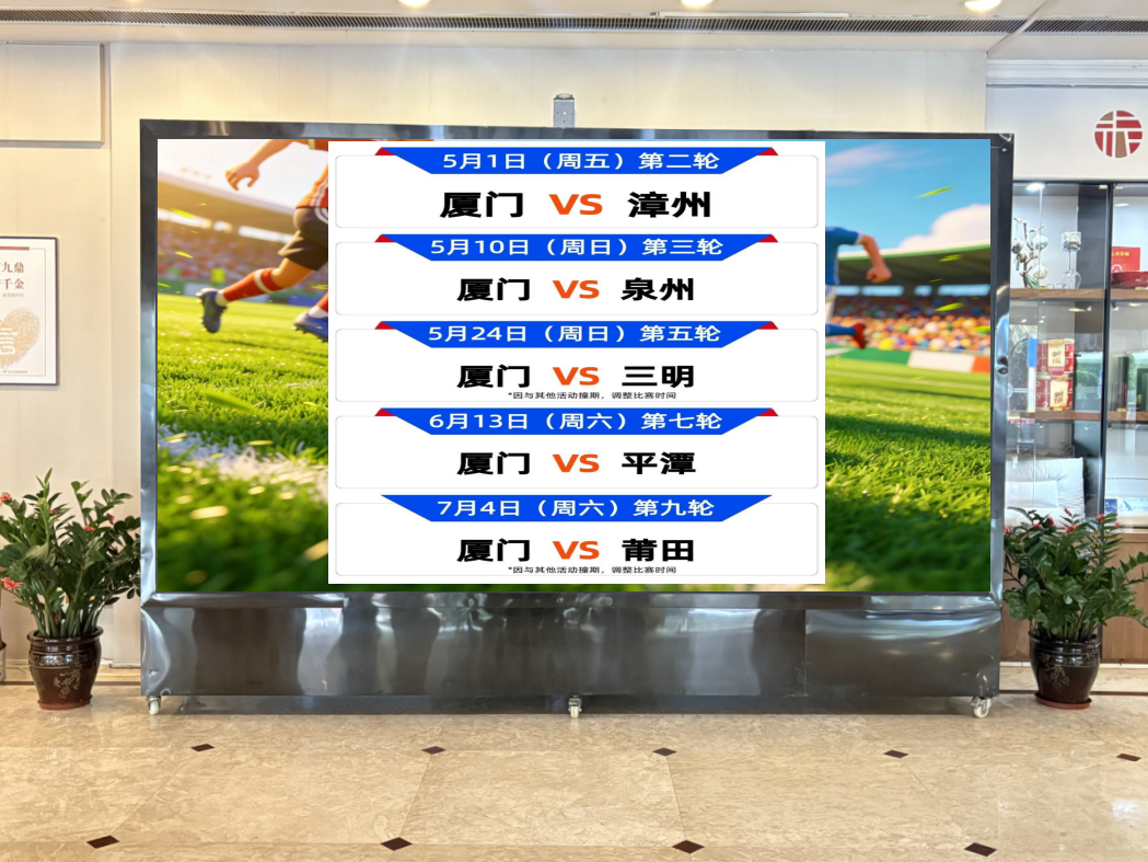 为方便球迷朋友,酒店大堂屏幕将会展示【厦门队主场闽超赛程日程表】,助您不错过每一场主场对决。